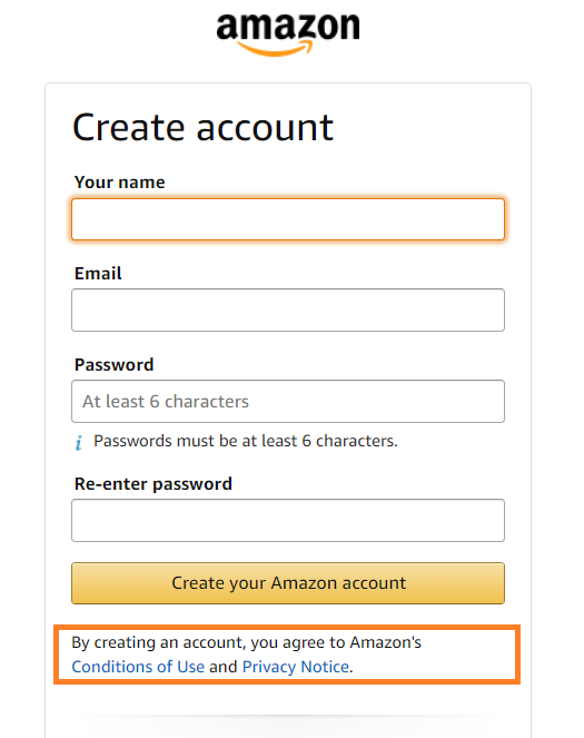 The second type is a "click". A user performs an active action to express consent. The advantage of this approach is that the consent is explicit and proving this fact is not a problem. Amazon uses the click approach.