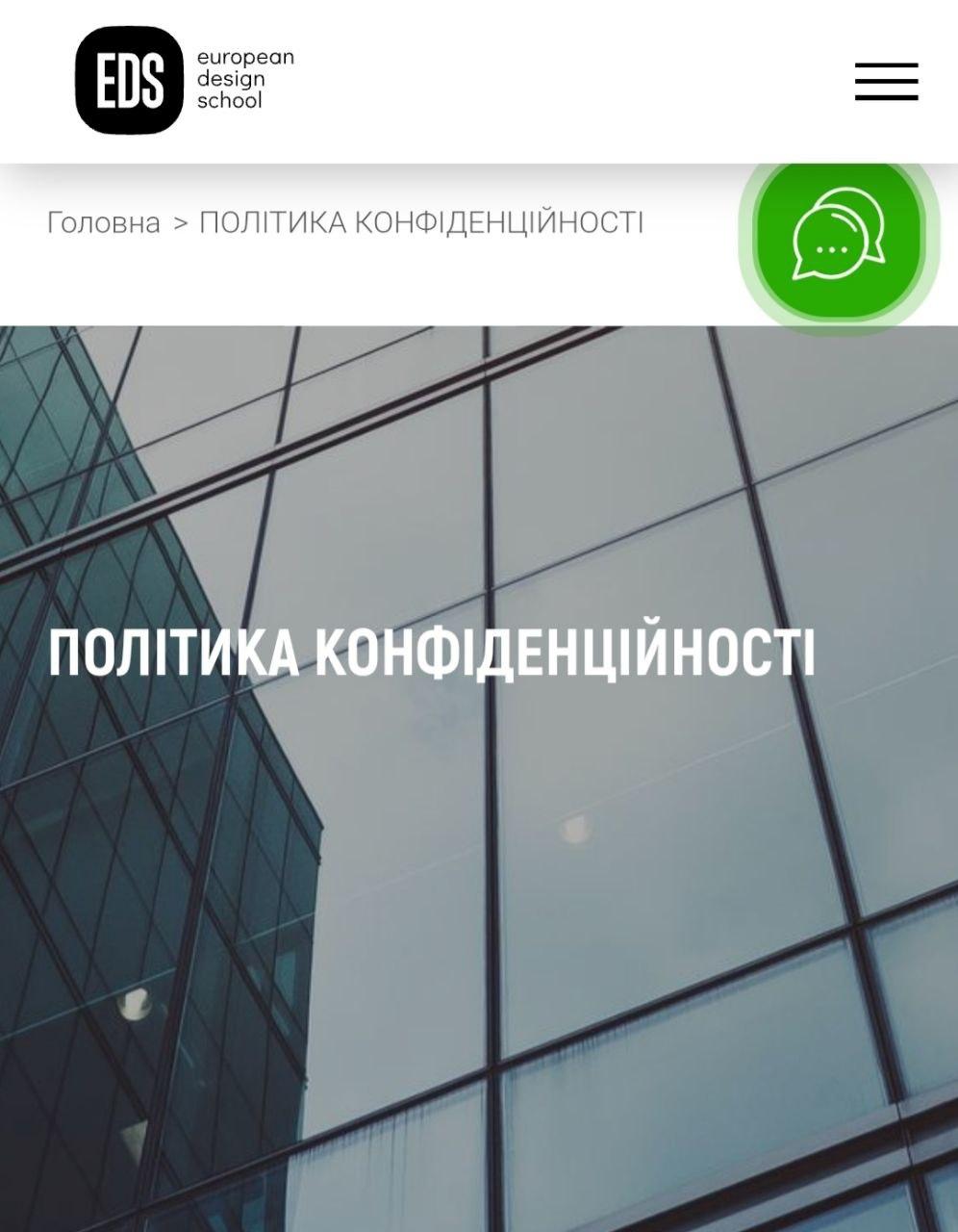 Європейська школа дизайну збирає та обробляє наступну інформацію: ім'я, прізвище та по батькові користувача, поштову адресу, адресу електронної пошти та телефон.